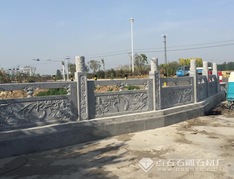 此類青石欄桿一般采用線雕或浮雕花紋,有一定的觀賞性,欄桿立柱、欄板尺寸能起到正常的安全防護作用,多用于公園、道路等。
